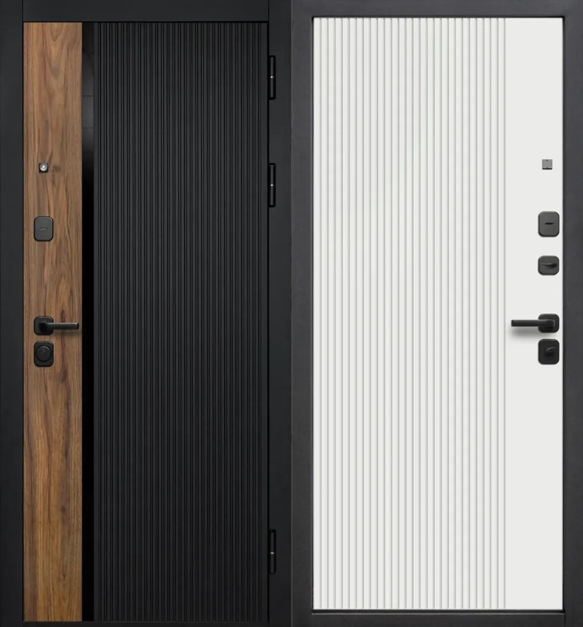 Наружная отделка: фрезерованная МДФ-панель 10 мм, цвет – «Сатин черный», «Орех каньон коньяк», вставка - черное стекло.