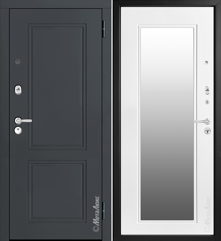 ОСОБЕННОСТИ КОНСТРУКЦИИ | • Дополнительную жесткость конструкции придает уникальное расположение ребер (2 вертикальных, 2 горизонтальных) • Усиленные петли на подшипниках • Усиление замковой части металлическим карманом • Усиление зоны петель легированным металлом квадратного сечения • Полотно двери оснащено мощными противосъемными ригелями диаметром 16 мм (3 шт.) • Особый профиль полотна. Края полотна завальцованы, что придает дополнительную жесткость и исключает вскрытие двери силовым отжимом • Безмолдинговая система крепления внутренней панели позволяет добиться безупречного внешнего вида изделия. Особая конфигурация профиля полотна дает возможность осуществить замену внутренней панели при необходимости |
