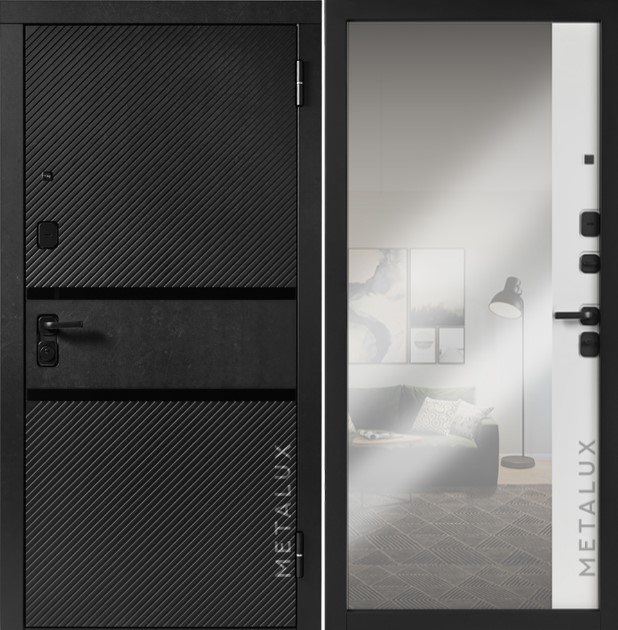 | ОСОБЕННОСТИ КОНСТРУКЦИИ | • Дополнительную жесткость конструкции придает уникальное расположение ребер (2 вертикальных, 2 горизонтальных) • Усиленные петли на подшипниках • Усиление замковой части металлическим карманом • Усиление зоны петель легированным металлом квадратного сечения • Полотно двери оснащено мощными противосъемными ригелями диаметром 16 мм (3 шт.) • Особый профиль полотна. Края полотна завальцованы, что придает дополнительную жесткость и исключает вскрытие двери силовым отжимом • Безмолдинговая система крепления внутренней панели позволяет добиться безупречного внешнего вида изделия. Особая конфигурация профиля полотна дает возможность осуществить замену внутренней панели при необходимости |
