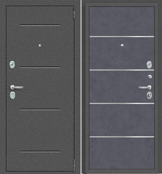 Три горизонтальных усиливающих омега-профиля (ребра) создают единую монолитную жесткость и прочность конструкции. Сверхпрочная конструкция «6x2» - двойная толщина стали профиля полотна, двух контуров коробки, в зонах замка и петель. Дополнительную стойкость ко взлому обеспечивают два противосъемных штыря с цинковым покрытием (для защиты металла от коррозии).
