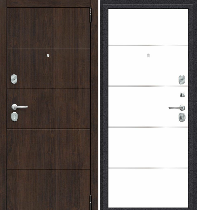 Усиление: Три горизонтальных усиливающих омега-профиля (ребра) создают единую монолитную жесткость и прочность конструкции. Сверхпрочная конструкция «6x2» - двойная толщина стали профиля полотна, двух контуров коробки, в зонах замка и петель. Дополнительную стойкость ко взлому обеспечивают два противосъемных штыря с цинковым покрытием (для защиты металла от коррозии).